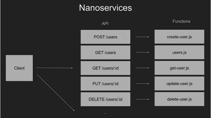 나노서비스 아키텍처(Nanoservices Architecture)는 마이크로서비스 아키텍처의 한 유형으로, 핵심적인 비즈니스 로직 대신 모든 로직을 작은 단위의 독립적인 서비스 단위로 분리한다.