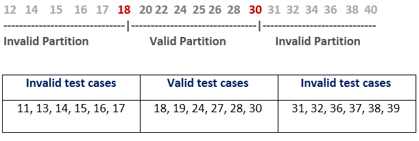 그러나 이는 19, 20, 21, 27, 29와 같은 중간 값들이 무시된다는 것을 의미하지는 않는다. 각 범위의 모든 값에 대해 테스트 케이스를 작성해야 한다.